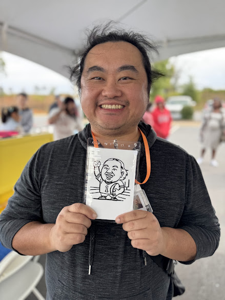 Interactive Coloring Station Take engagement to the next level with our optional Coloring Station! Guests receive printed versions of their sketches at a creatively arranged table stocked with quality markers and art supplies, inviting them to add personal touches to their portraits. This hands-on activity extends the experience, encourages conversation, and creates another round of shareable content.
